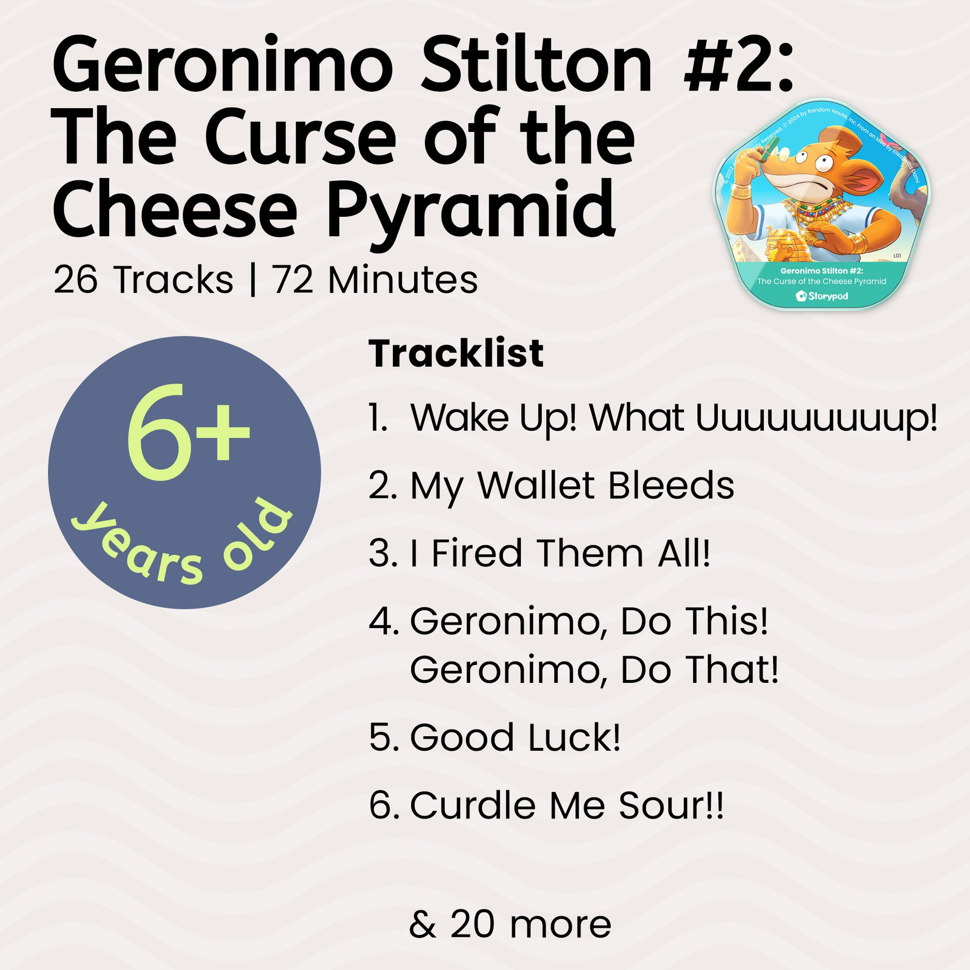 Travel along with Geronimo as he journeys from New Mouse City to Egypt to interview a famous archeologist and learn about the Seven Wonders of the Ancient Mouse World! In this installment of the widely popular children’s series, mouse-journalist Geronimo must brave through flimsy flights and shady ships to appease his penny-pinching grandfather and procure a story for the family paper, The Rodent Gazette. Filled with camel rides, hieroglyphics, and a pharaoh's curse, this Token will teach your child about geography, mythology, and history in a way that will keep them laughing and listening for more!