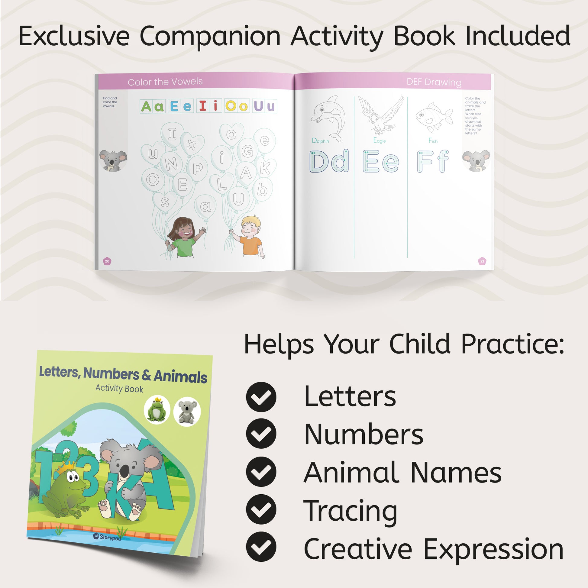 Storypod presents... "Letters with Kalinda Koala." Join Kalinda Koala on her explorations as she meets different animals and identifies the letters each animal represents. This interactive reading experience seamlessly integrates activities, such as tracing letters from A-Z and connecting them to animals, ensuring reinforced learning.